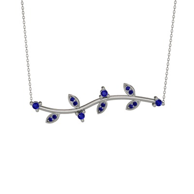 Lab safir 18 ayar beyaz altın kolye (40 cm beyaz altın rolo zincir)