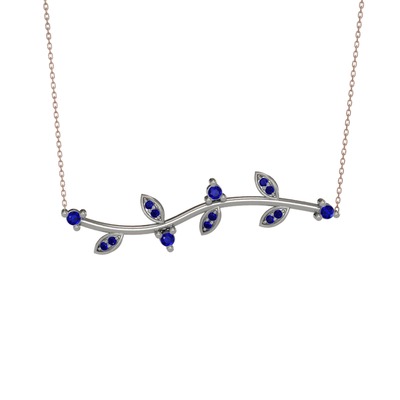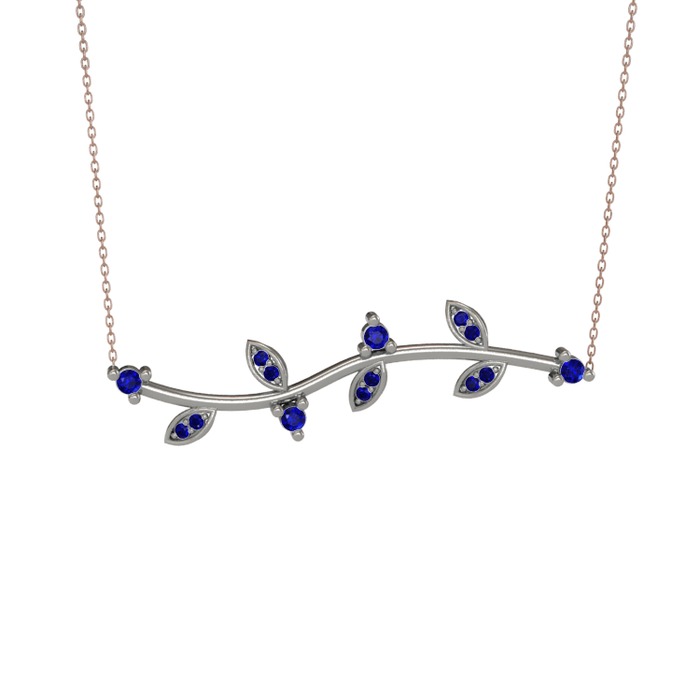 Lab safir 8 ayar beyaz altın kolye (40 cm rose altın rolo zincir)