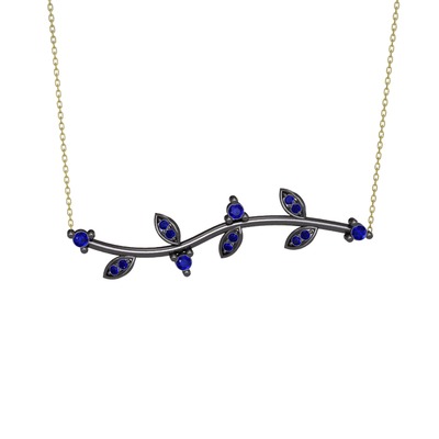 Lab safir 925 ayar siyah rodyum kaplama gümüş kolye (40 cm altın rolo zincir)