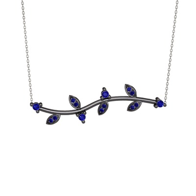 Lab safir 925 ayar siyah rodyum kaplama gümüş kolye (40 cm beyaz altın rolo zincir)