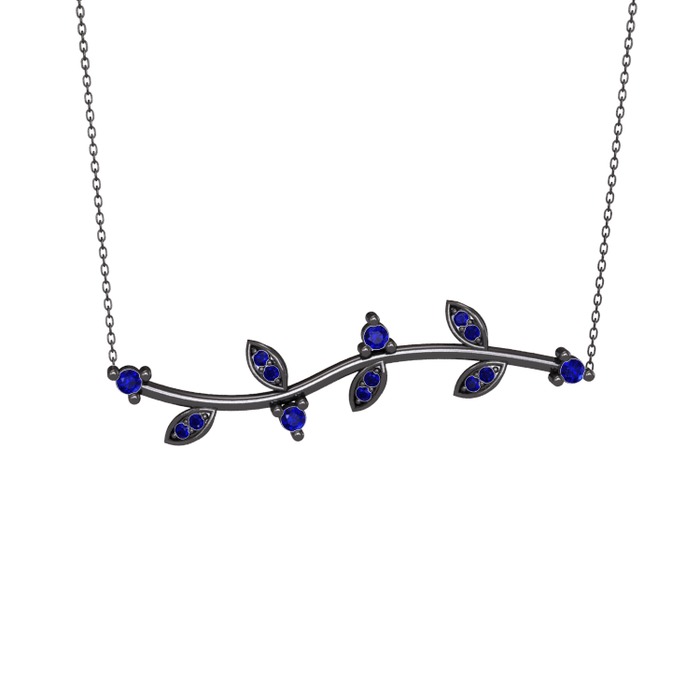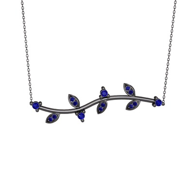 Lab safir 925 ayar siyah rodyum kaplama gümüş kolye (40 cm gümüş rolo zincir)