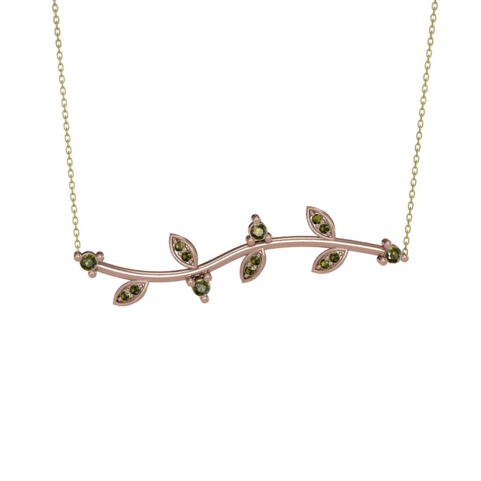 Peridot 18 ayar rose altın kolye (40 cm altın rolo zincir)
