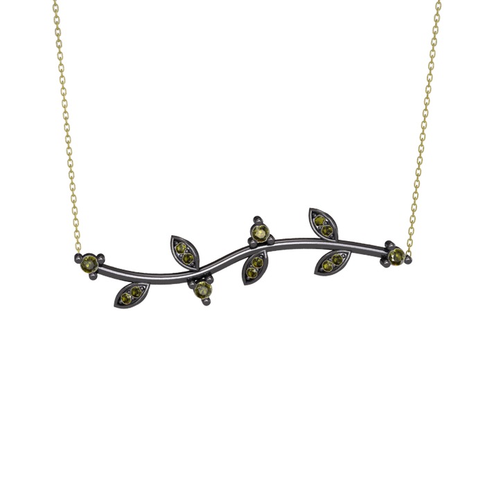 Peridot 925 ayar siyah rodyum kaplama gümüş kolye (40 cm altın rolo zincir)