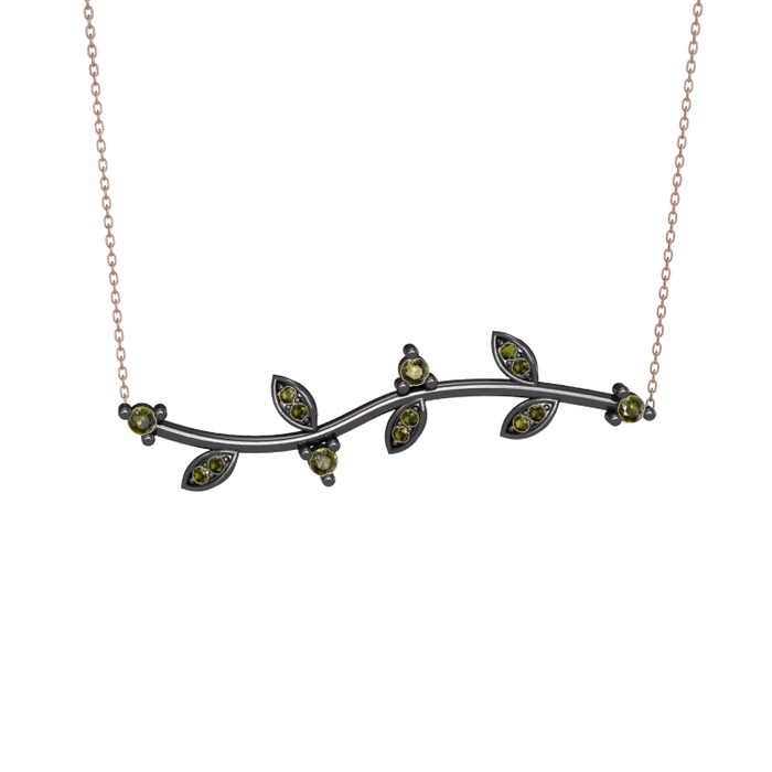 Peridot 925 ayar siyah rodyum kaplama gümüş kolye (40 cm rose altın rolo zincir)