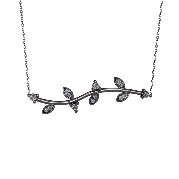 Pırlanta 925 ayar siyah rodyum kaplama gümüş kolye (1.152 karat, 40 cm gümüş rolo zincir)