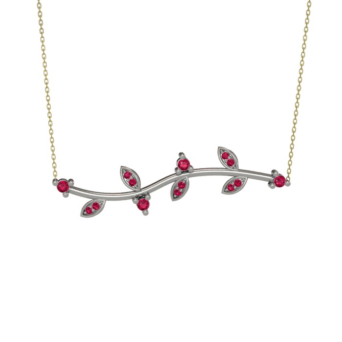 Rodolit garnet 14 ayar beyaz altın kolye (40 cm altın rolo zincir)