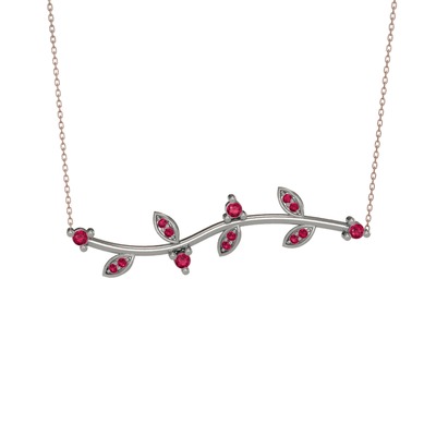Rodolit garnet 18 ayar beyaz altın kolye (40 cm gümüş rolo zincir)