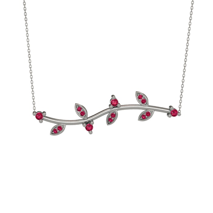 Rodolit garnet 18 ayar beyaz altın kolye (40 cm gümüş rolo zincir)