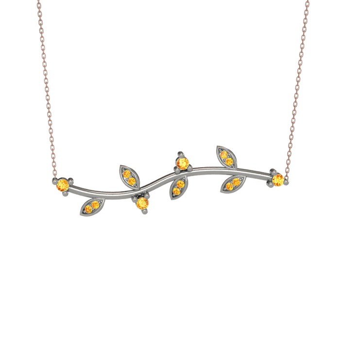 Sitrin 925 ayar gümüş kolye (40 cm rose altın rolo zincir)
