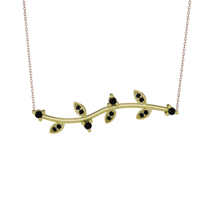 Siyah zirkon 14 ayar altın kolye (40 cm rose altın rolo zincir)