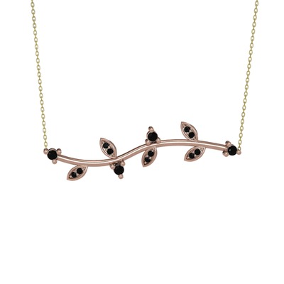 Siyah zirkon 14 ayar rose altın kolye (40 cm altın rolo zincir)