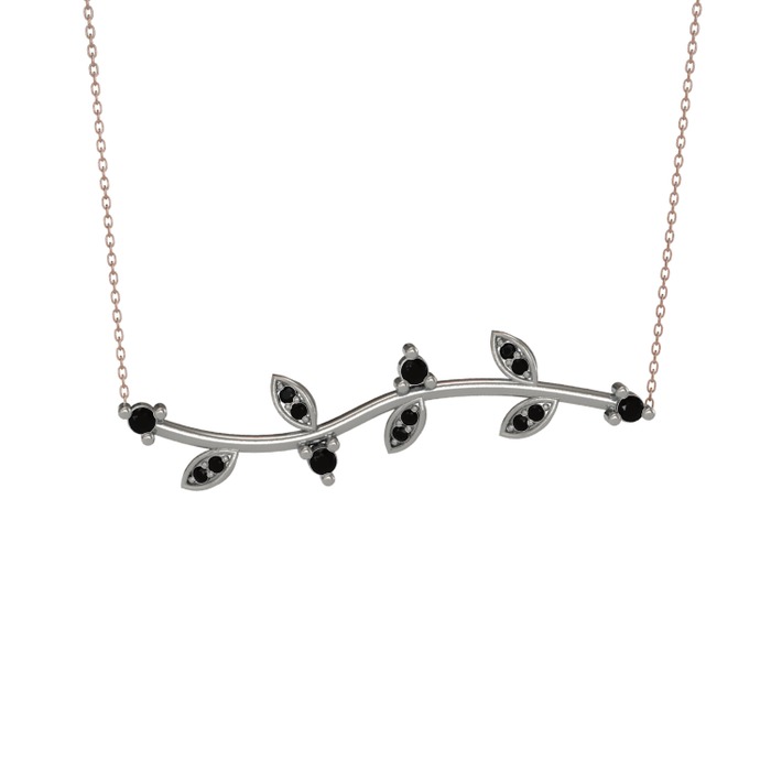 Siyah zirkon 8 ayar beyaz altın kolye (40 cm rose altın rolo zincir)