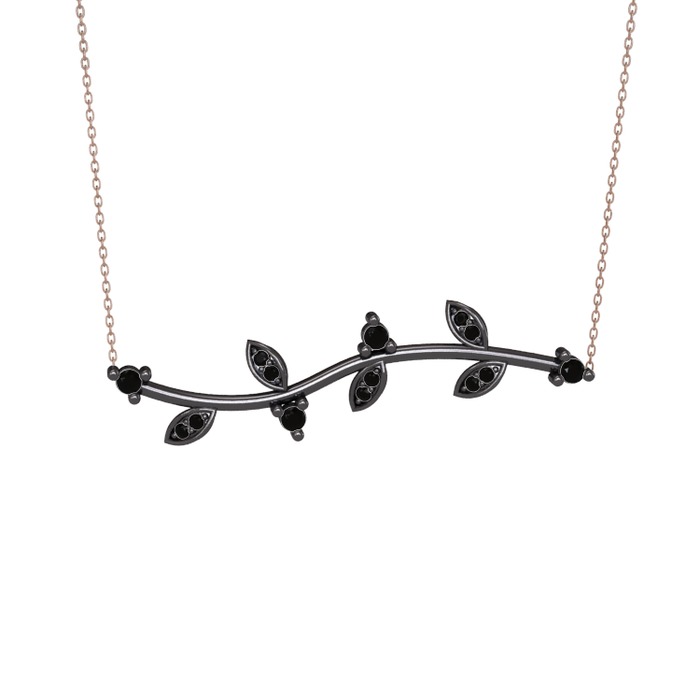 Siyah zirkon 925 ayar siyah rodyum kaplama gümüş kolye (40 cm rose altın rolo zincir)