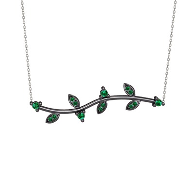 Yeşil kuvars 925 ayar siyah rodyum kaplama gümüş kolye (40 cm gümüş rolo zincir)