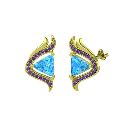 Akuamarin ve ametist 925 ayar altın kaplama gümüş küpe