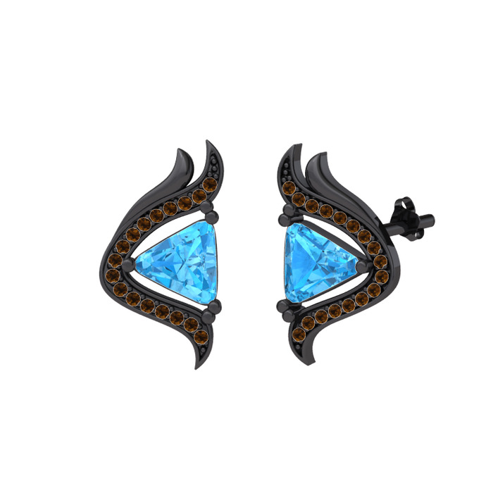 Akuamarin ve dumanlı kuvars 925 ayar siyah rodyum kaplama gümüş küpe