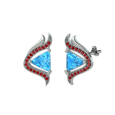 Akuamarin ve garnet 925 ayar gümüş küpe