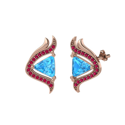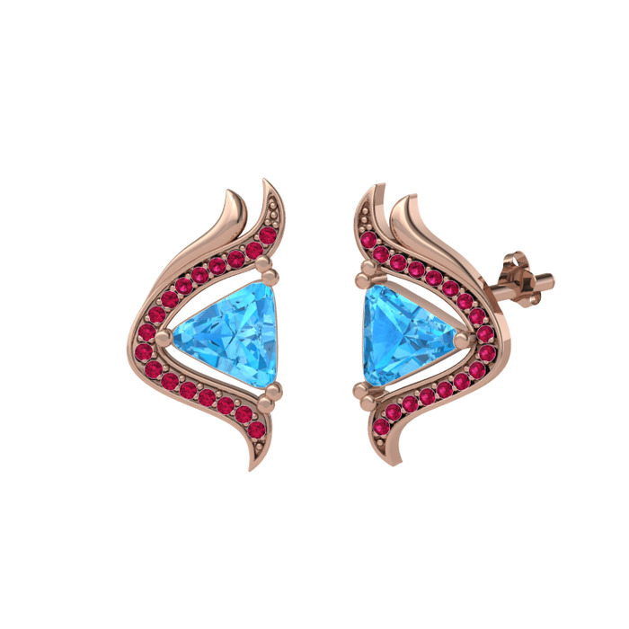 Akuamarin ve rodolit garnet 8 ayar rose altın küpe