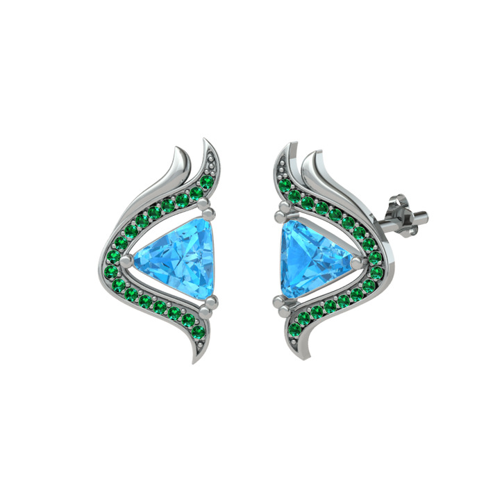 Akuamarin ve yeşil kuvars 8 ayar beyaz altın küpe