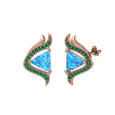 Akuamarin ve yeşil kuvars 8 ayar rose altın küpe