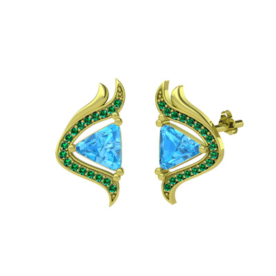 Akuamarin ve yeşil kuvars 925 ayar altın kaplama gümüş küpe