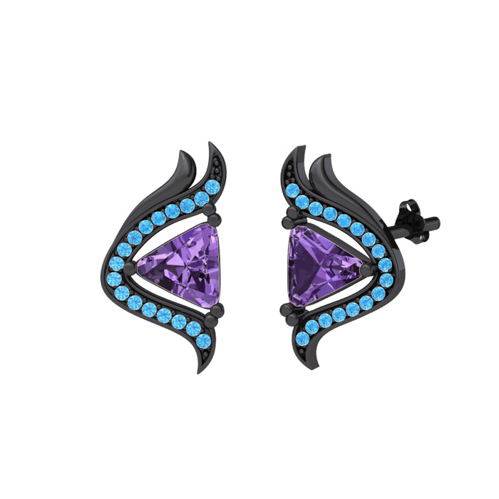 Ametist ve akuamarin 925 ayar siyah rodyum kaplama gümüş küpe