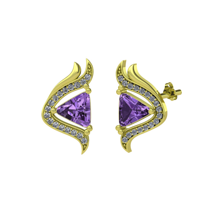 Ametist ve beyaz zirkon 8 ayar altın küpe
