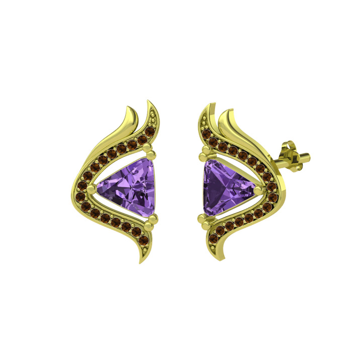 Ametist ve dumanlı kuvars 18 ayar altın küpe