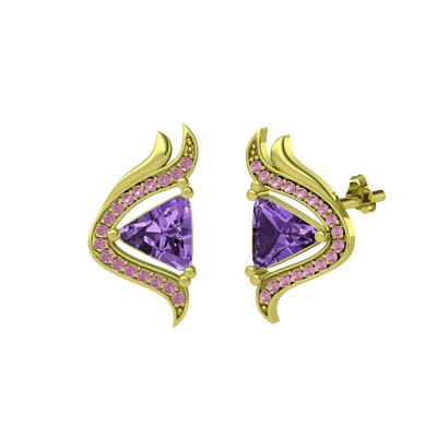 Ametist ve pembe kuvars 14 ayar altın küpe
