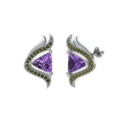 Ametist ve peridot 18 ayar beyaz altın küpe