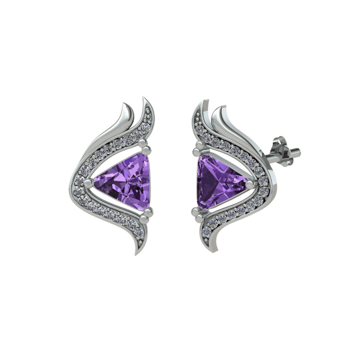 Ametist ve pırlanta 18 ayar beyaz altın küpe (0.306 karat)