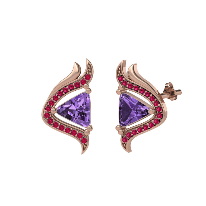 Ametist ve rodolit garnet 18 ayar rose altın küpe