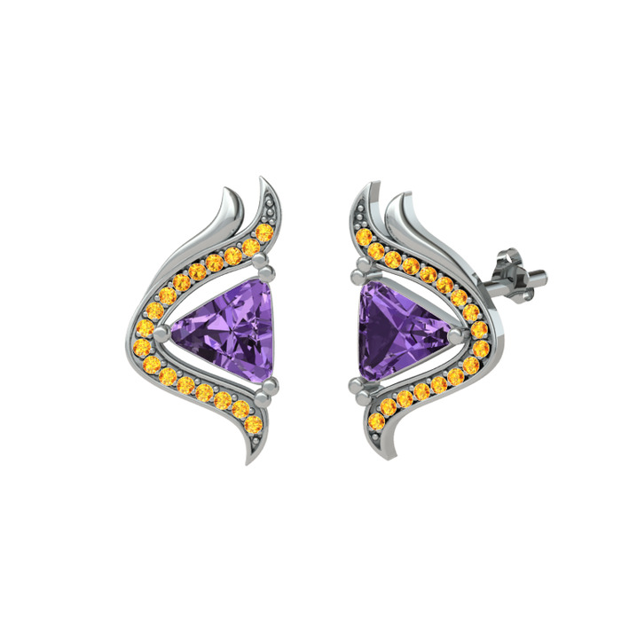 Ametist ve sitrin 14 ayar beyaz altın küpe