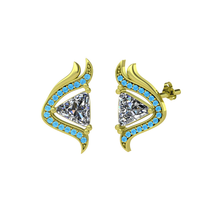 Beyaz zirkon ve akuamarin 925 ayar altın kaplama gümüş küpe