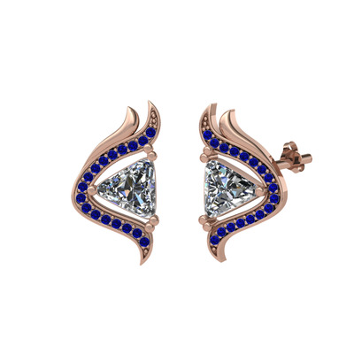 Beyaz zirkon ve lab safir 925 ayar rose altın kaplama gümüş küpe