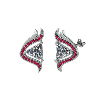 Beyaz zirkon ve rodolit garnet 18 ayar beyaz altın küpe