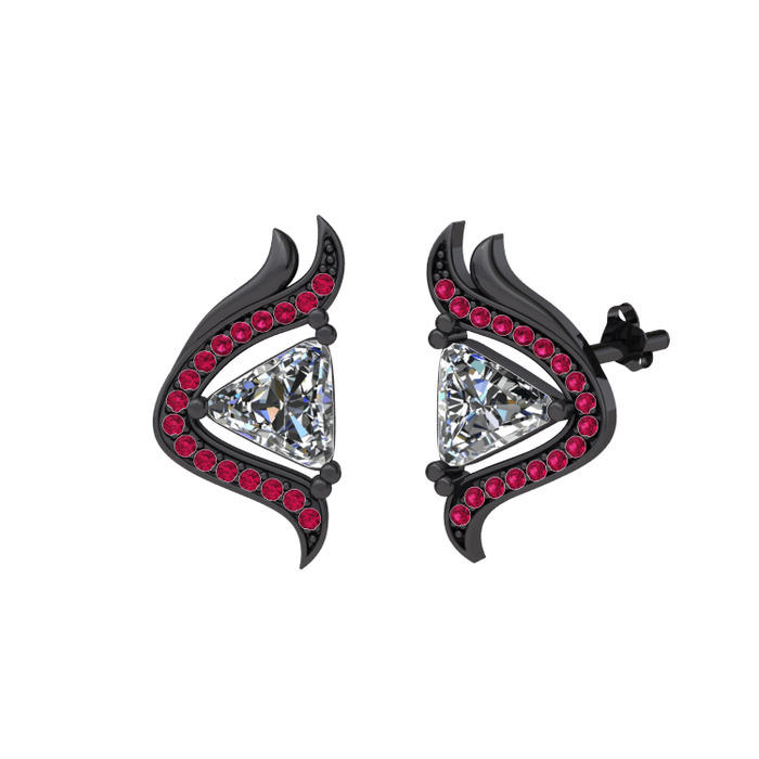 Beyaz zirkon ve rodolit garnet 925 ayar siyah rodyum kaplama gümüş küpe