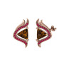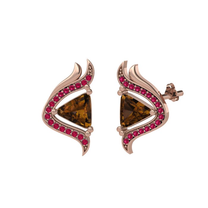 Dumanlı kuvars ve rodolit garnet 18 ayar rose altın küpe
