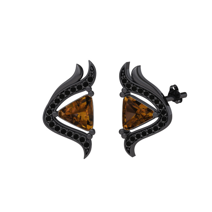 Dumanlı kuvars ve siyah zirkon 925 ayar siyah rodyum kaplama gümüş küpe