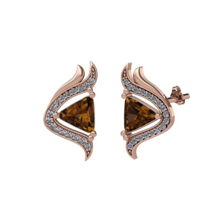 Dumanlı kuvars ve swarovski 18 ayar rose altın küpe