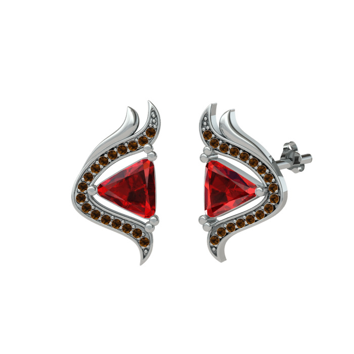 Garnet ve dumanlı kuvars 925 ayar gümüş küpe