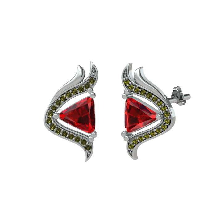 Garnet ve peridot 8 ayar beyaz altın küpe