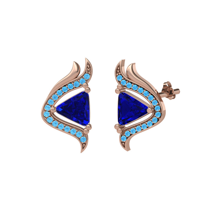 Lab safir ve akuamarin 8 ayar rose altın küpe