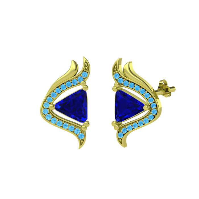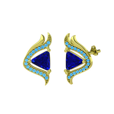 Lab safir ve akuamarin 925 ayar altın kaplama gümüş küpe