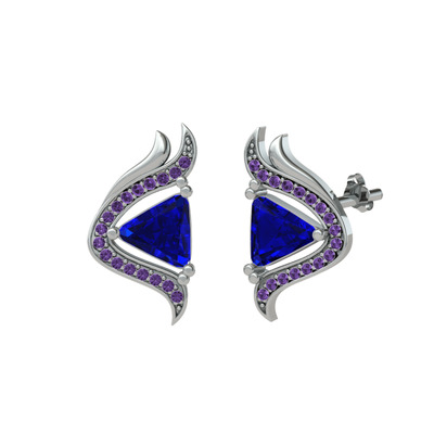 Lab safir ve ametist 8 ayar beyaz altın küpe