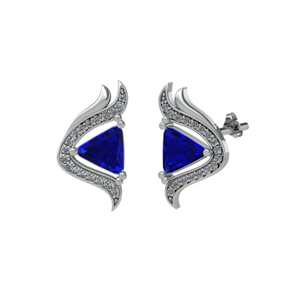 Lab safir ve beyaz zirkon 18 ayar beyaz altın küpe