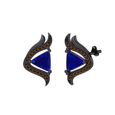Lab safir ve dumanlı kuvars 925 ayar siyah rodyum kaplama gümüş küpe