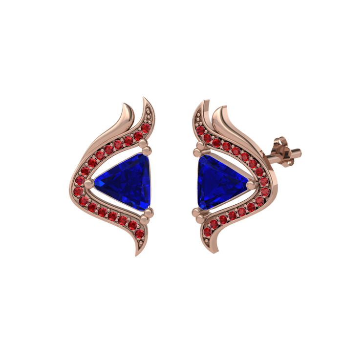 Lab safir ve garnet 925 ayar rose altın kaplama gümüş küpe