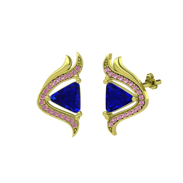 Lab safir ve pembe kuvars 14 ayar altın küpe