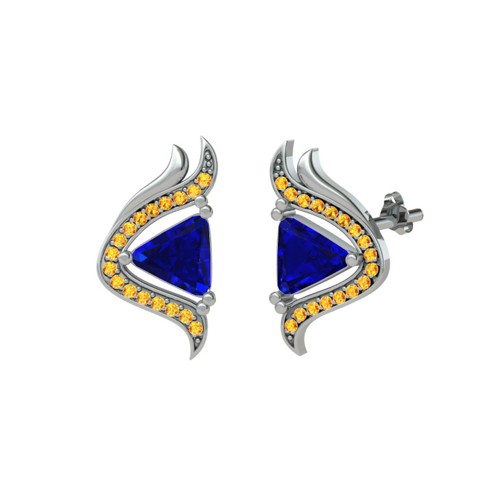 Lab safir ve sitrin 8 ayar beyaz altın küpe